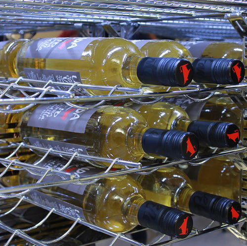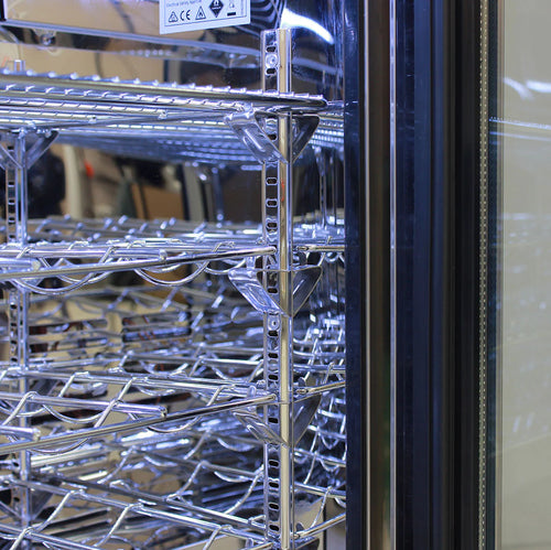 - Shelves: 6 x Adjustable Chromed Special 'No Topple' Shelves (500mmW x 355mmD), Wine Shelf Option