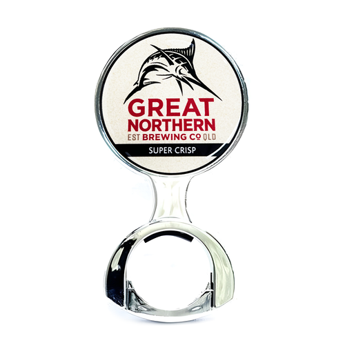 This sleek chrome decal holder is perfect for fans of the Great Northern beer. It adds a touch of class to any tap and makes it easy to display your beer brand proudly.